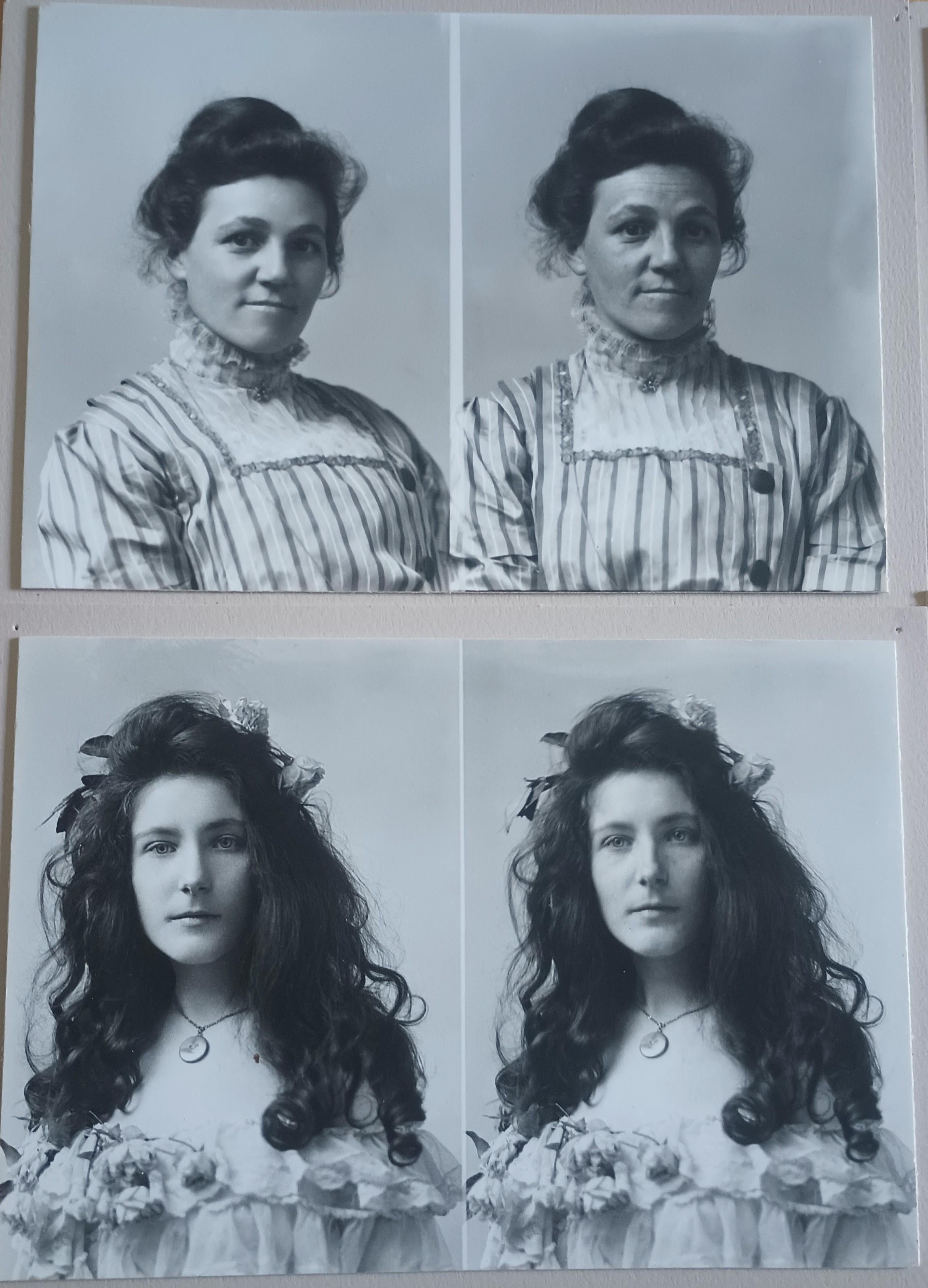 Some of these originals are very strange. The pupils, skin texture and especially the appearance of the children. I definitely realize that photography was new back then as were touch ups but I just can’t explain some of the details. Very weird