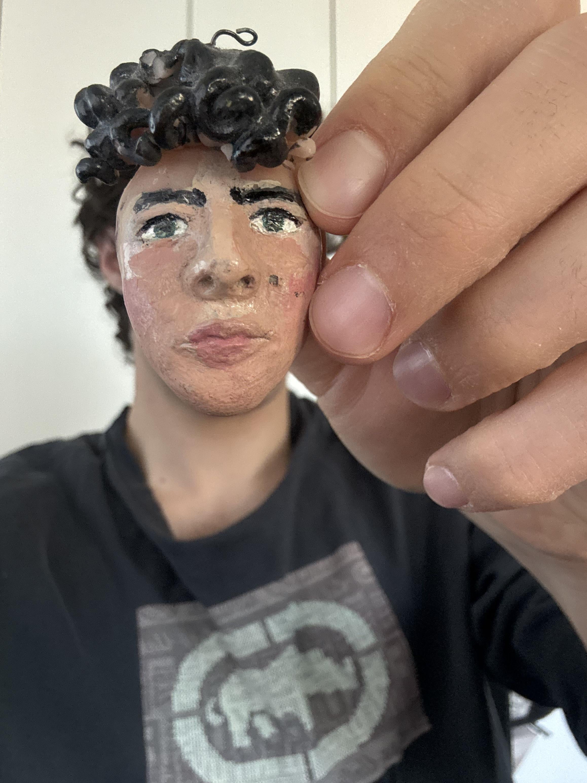 clay charm i made of my friend’s face lines up perfectly