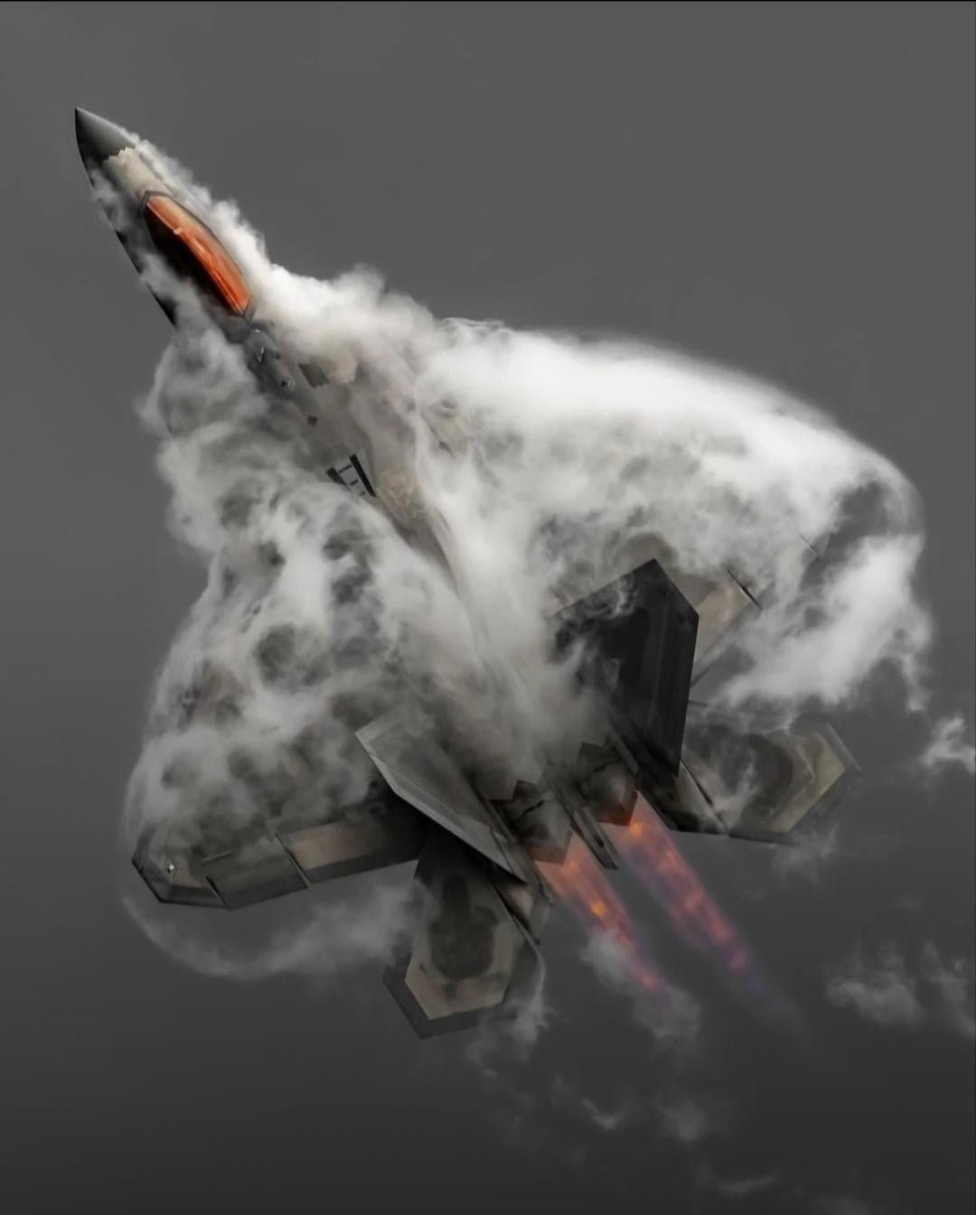 Capturing the vapor cloud after a high G thrust vectored maneuver is what I’d call this image.