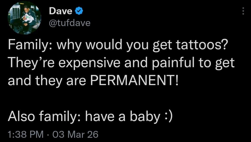 Yeah, but you can’t guilt trip your tattoo into doing stuff for you.