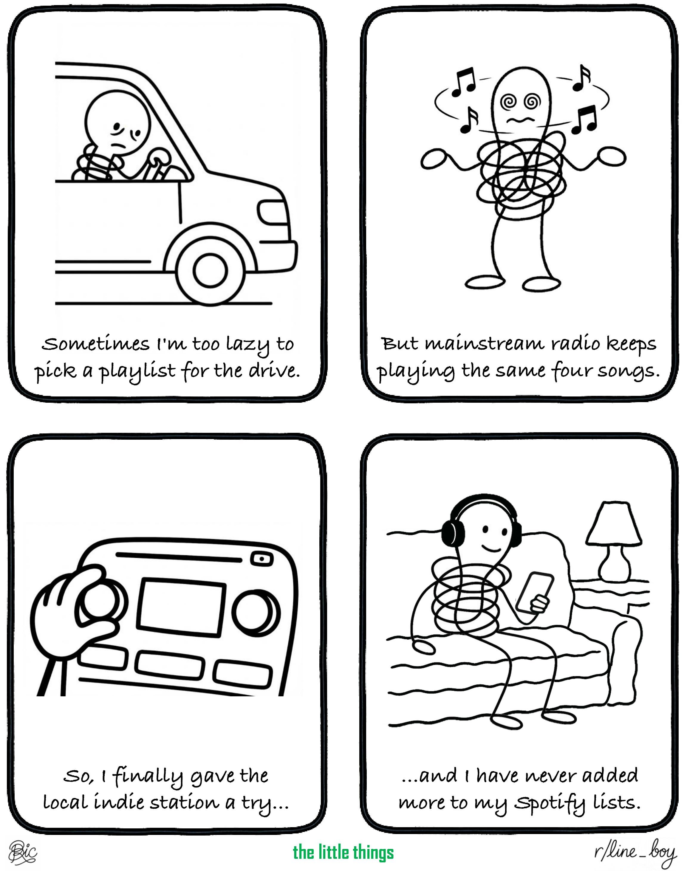 I barely ever listen to the radio and I get quickly reminded why I stream music instead. It gets comfy but even your own music can be repetitive over a long enough period. Usually I find more music through TV, but the last few weeks I’ve have heard so many new songs I like.