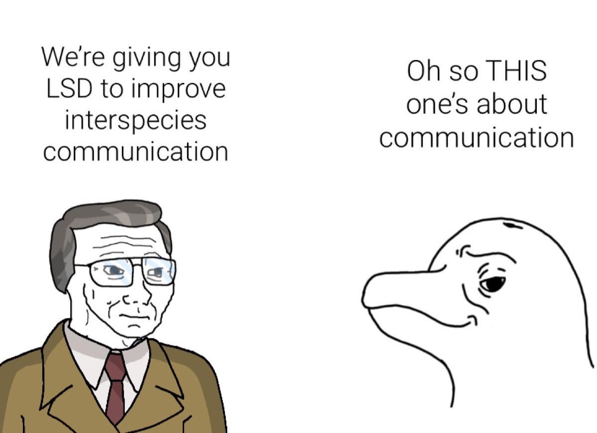 In the 1960s, neuroscientist John C. Lilly conducted dolphin communication experiments that included administering LSD to study altered states of consciousness. The project later became controversial due to unconventional behavioral management methods used during the research. The dolphins did not learn English.