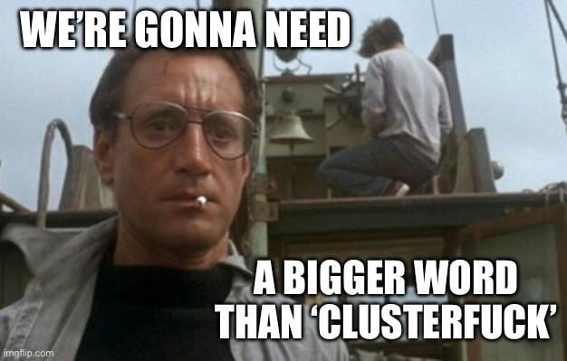 Easy… you forgot the “possibly biggest, best, greatest clusterfuck anyone has ever seen before, like no one has ever seen before in the history of the world!!!” you just needed to add his usual spin phrasing propaganda babble embellishments to make it so much more believable… to a certain group.