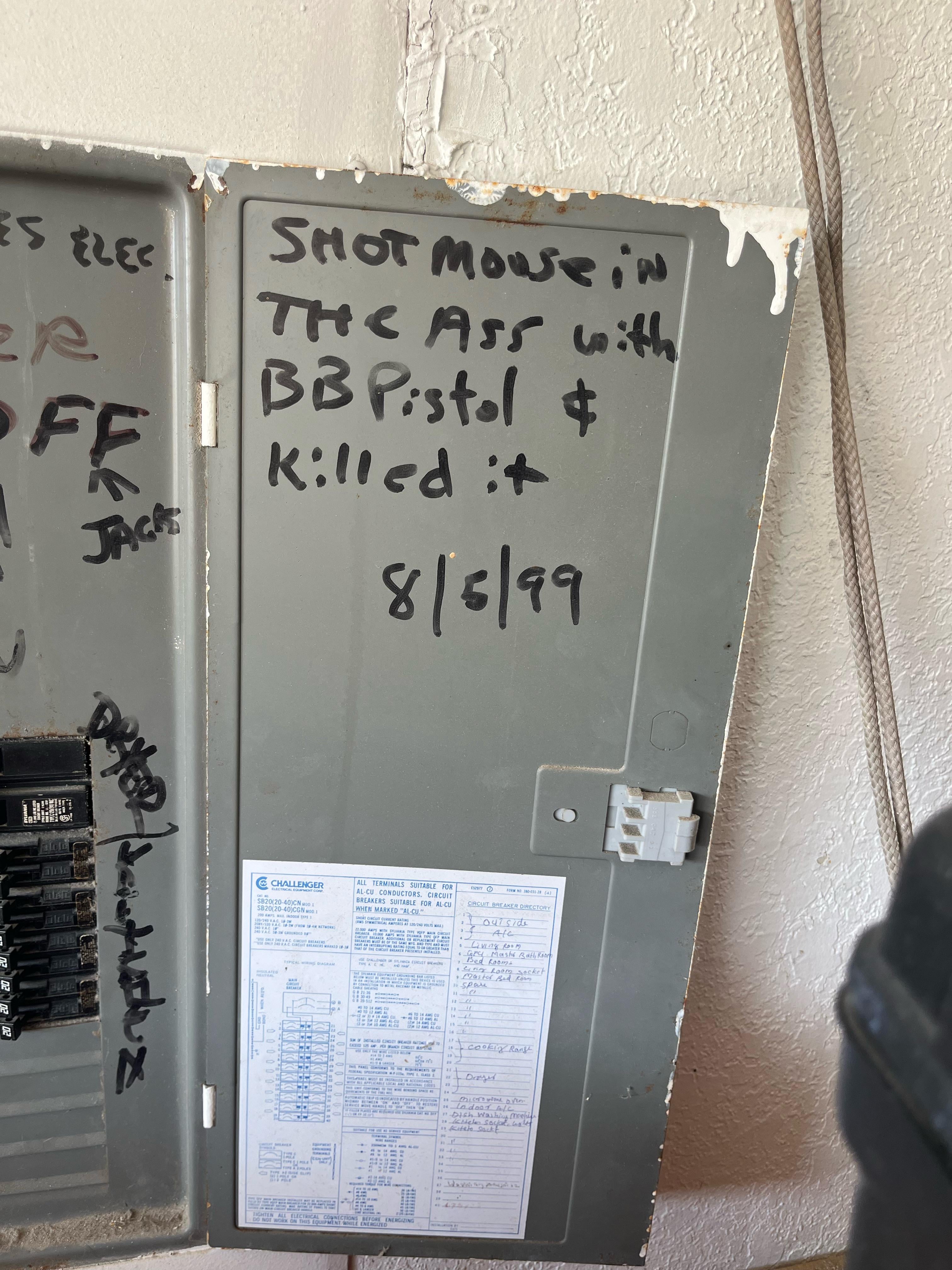 docubed on March 5, 2026 7:43 pm This picture wasn’t me, but when I had some work done on my house and we had exposed beams etc I wrote a bunch of crazy notes just to amuse myself.