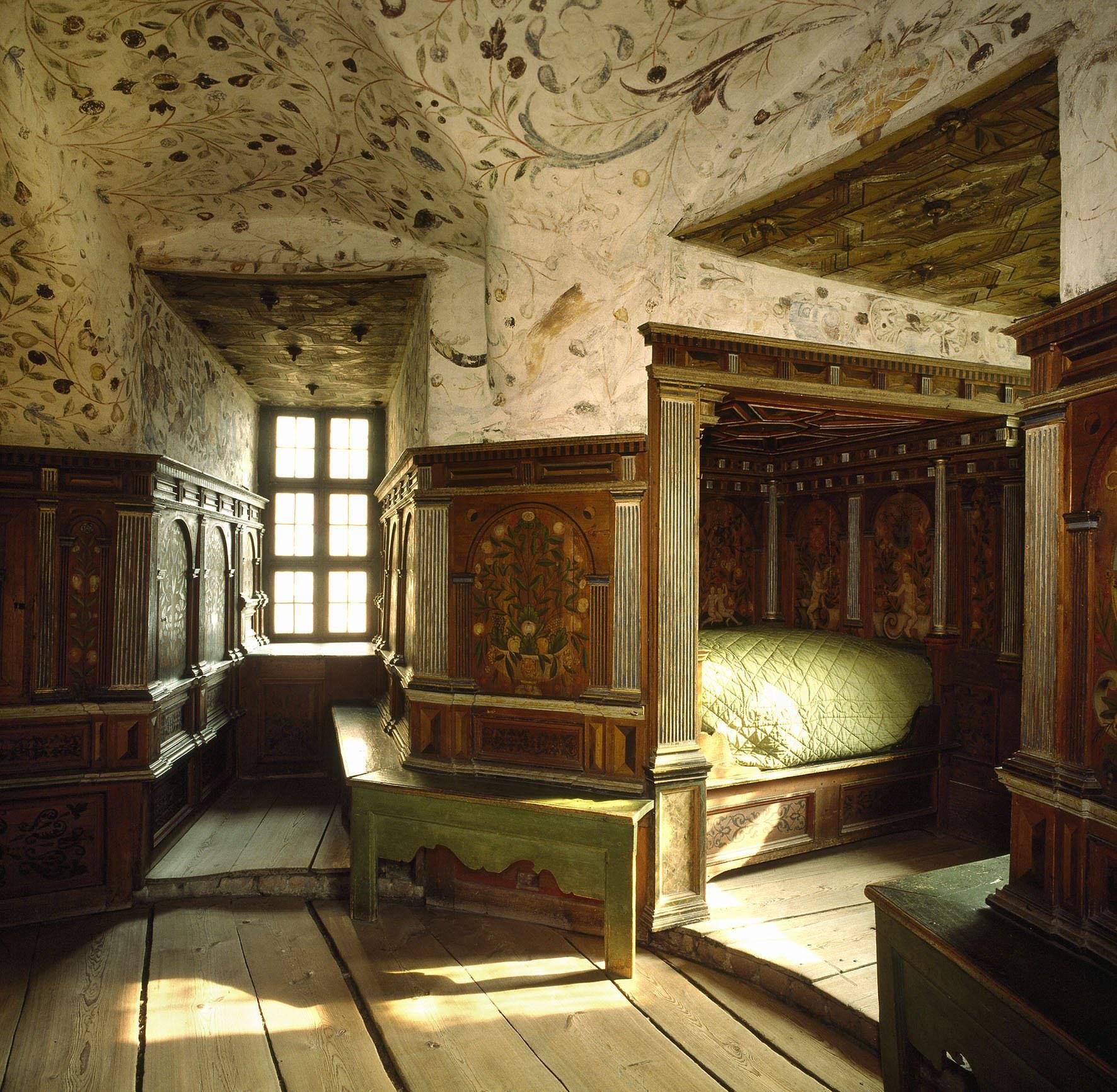 Duke Karl’s Chamber at Gripsholm Castle, is the castle’s only fully preserved room from the Vasa period, and is one of the oldest Renaissance interiors in Sweden. The décor is virtually untouched since the chamber was created for Gustav Vasa’s youngest son in the 1570s [1772×1732]
