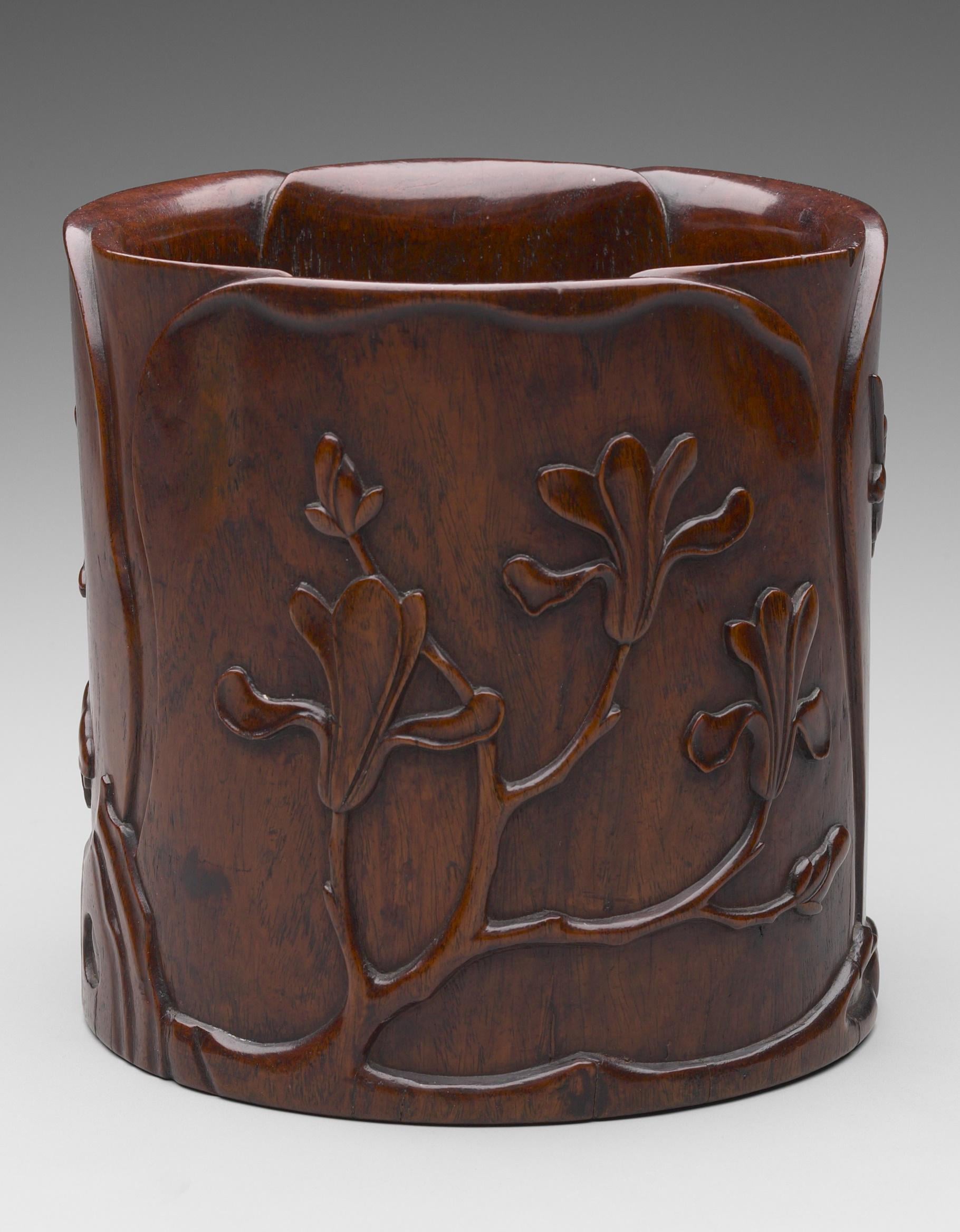 Brush pot with magnolias. China, Ming dynasty, late 16th-early 17th c. Huanghuali wood. Yale University Art Gallery collection [1820×2336]