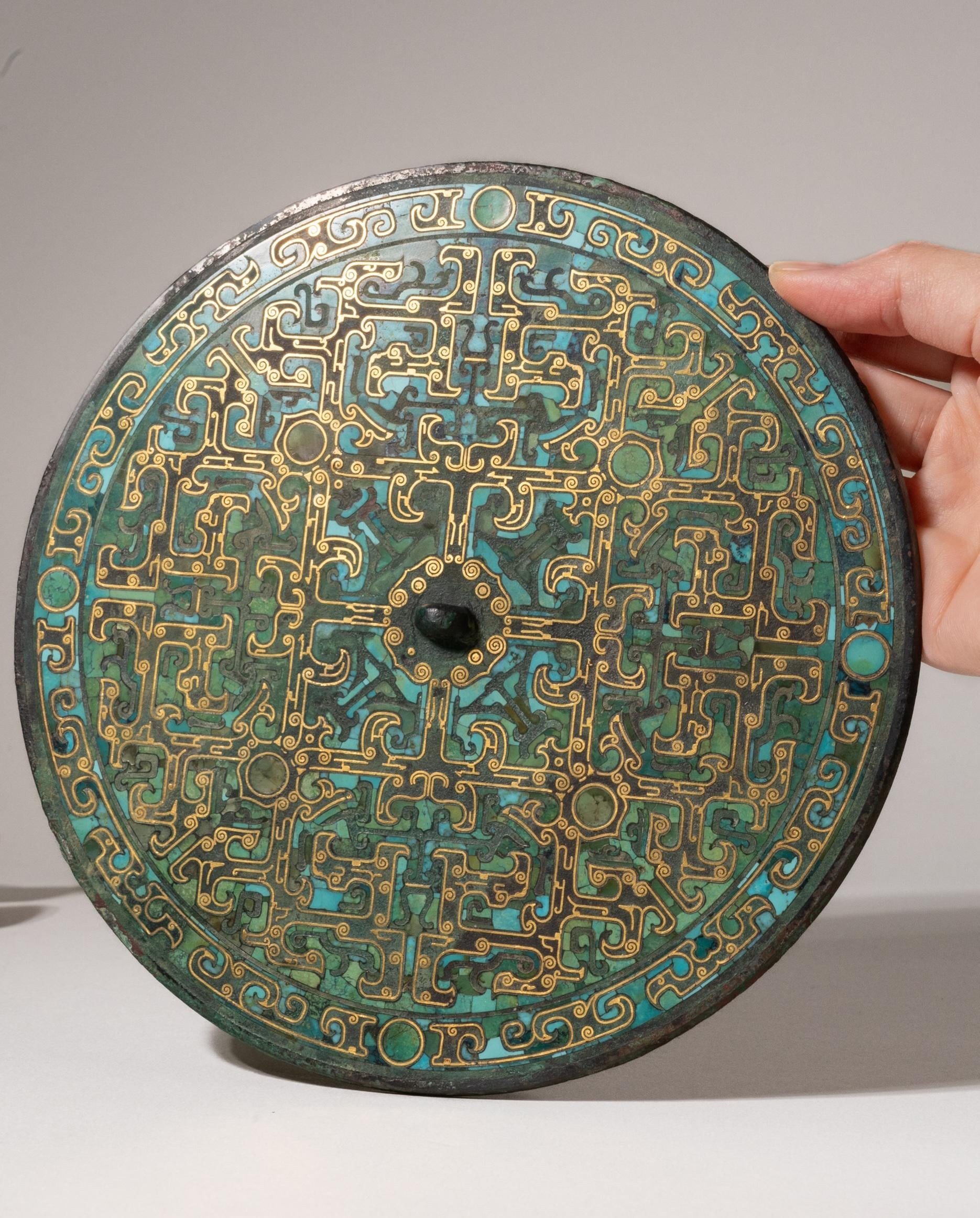 A turquoise and gold-inlaid bronze mirror, Eastern Zhou dynasty, Warring States Period (c. 475–221 BCE), from China [1870×2324]