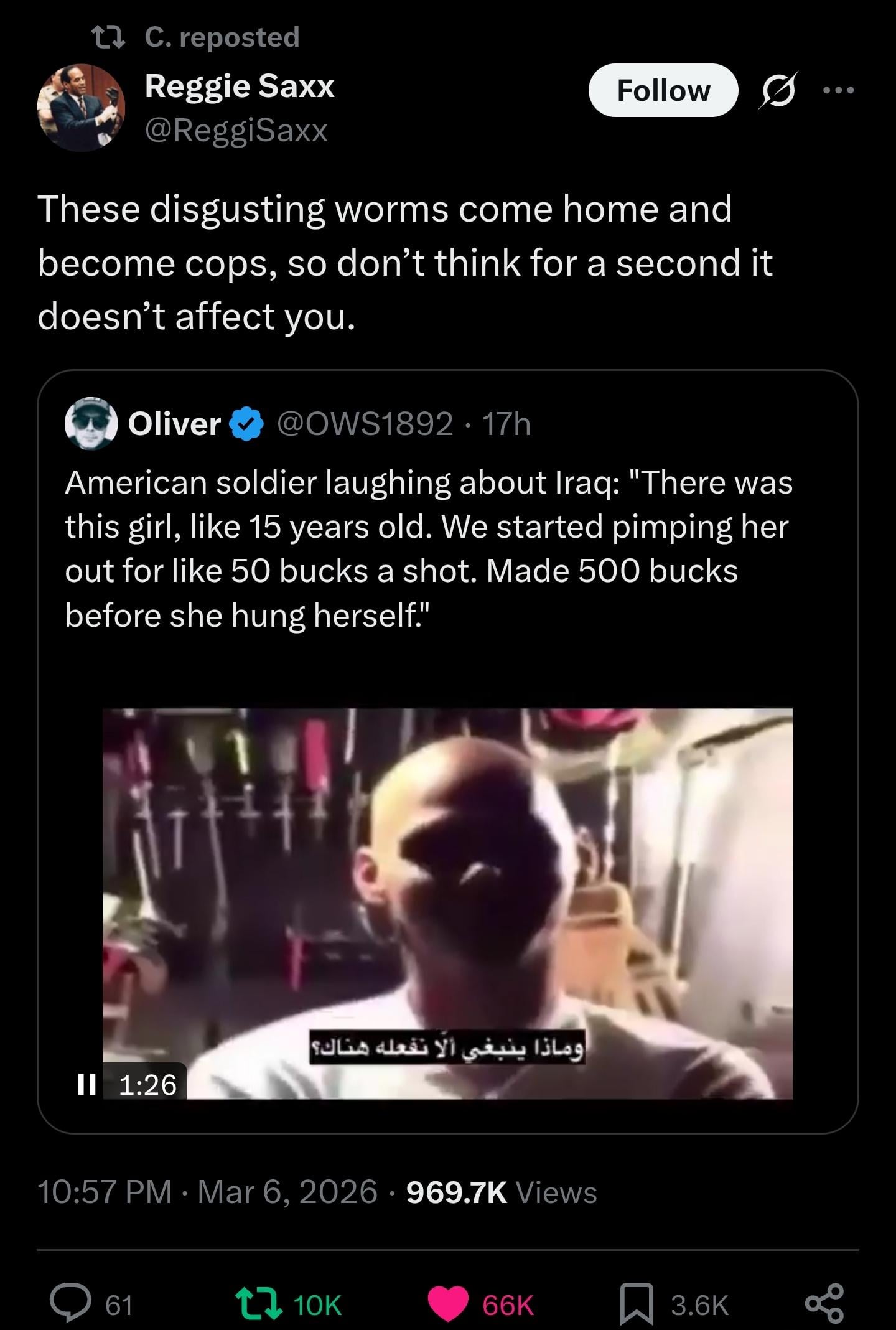 My cousin was in Baghdad for a good chunk of the “rebuilding” and he told some absolute fucking horror stories. Same shit you hear about nam. Haven’t spoken to him in over 15 years because of it