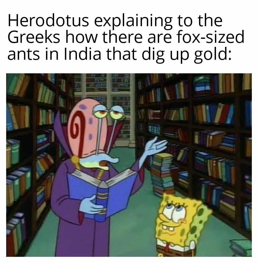 The best about Herodotus is how he select what to believe and not, discarding stuff that basically proved something that we know by today’s standards (i.e. the circunnavegation of Africa by Phoenician sailors sponsored by the pharaoh Neco II) while accepting as obvious other information that is basically insane