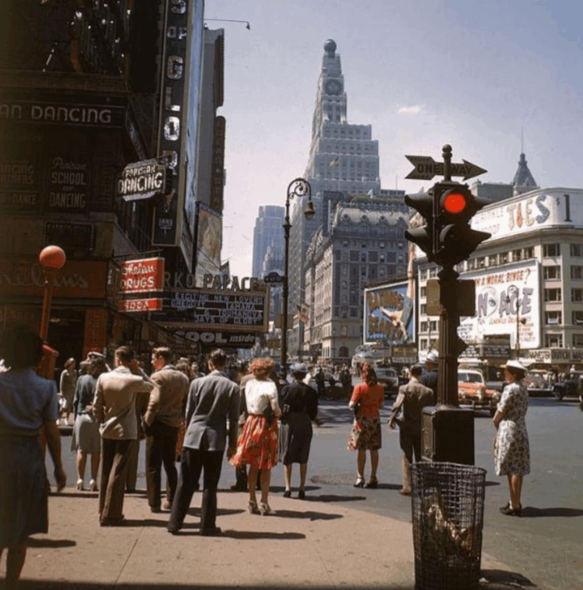 1941 NYC Milling About on a Sunny Day Times Square Looking South on Broadway