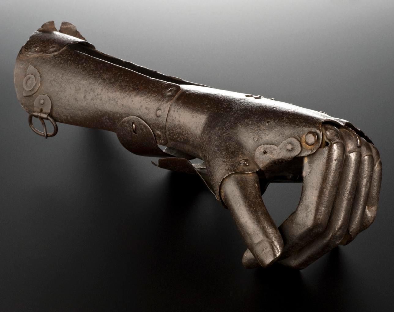 [Museum](https://collection.sciencemuseumgroup.org.uk/objects/co127206/artificial-left-hand-and-forearm-europe-1501-1600). This artificial hand dates from the 1500s. Most limbs were amputated in this era due to war injuries or accidents. It consists of a metal casing. This wrapped around the forearm stump and was secured by metal or leather straps. An internal mechanical structure (now missing) may have allowed the fingers basic movement. The fingers were created as a solid mass. However, they can flex at the largest knuckle joint.