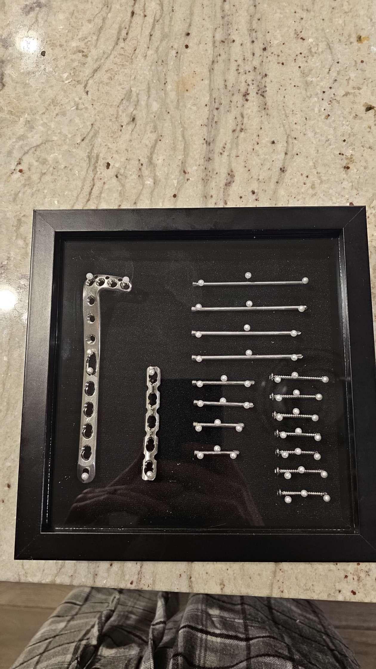 My daughter has hip dysplasia and has a metal bracket holding her leg together. I wasn’t certain if it’s macabre to hold on to it.
