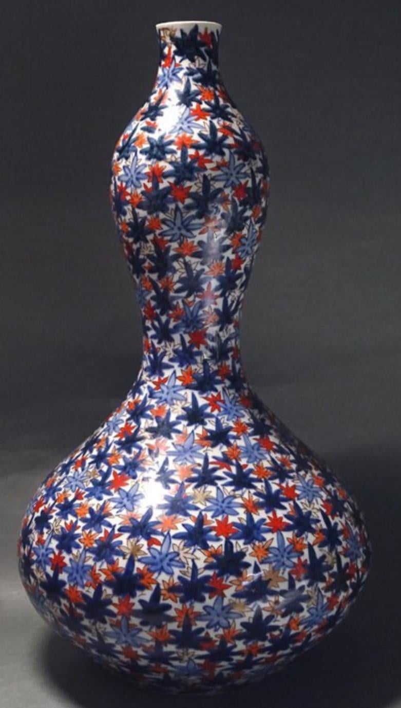 I own this stunning Japanese vase, I believe it to be mid-Meji, but that is just guess. Ca. 50 cm tall, light and dark underglaze blue, with added overglaze red and gold/orange. Came with a wooden crate custom made for it.