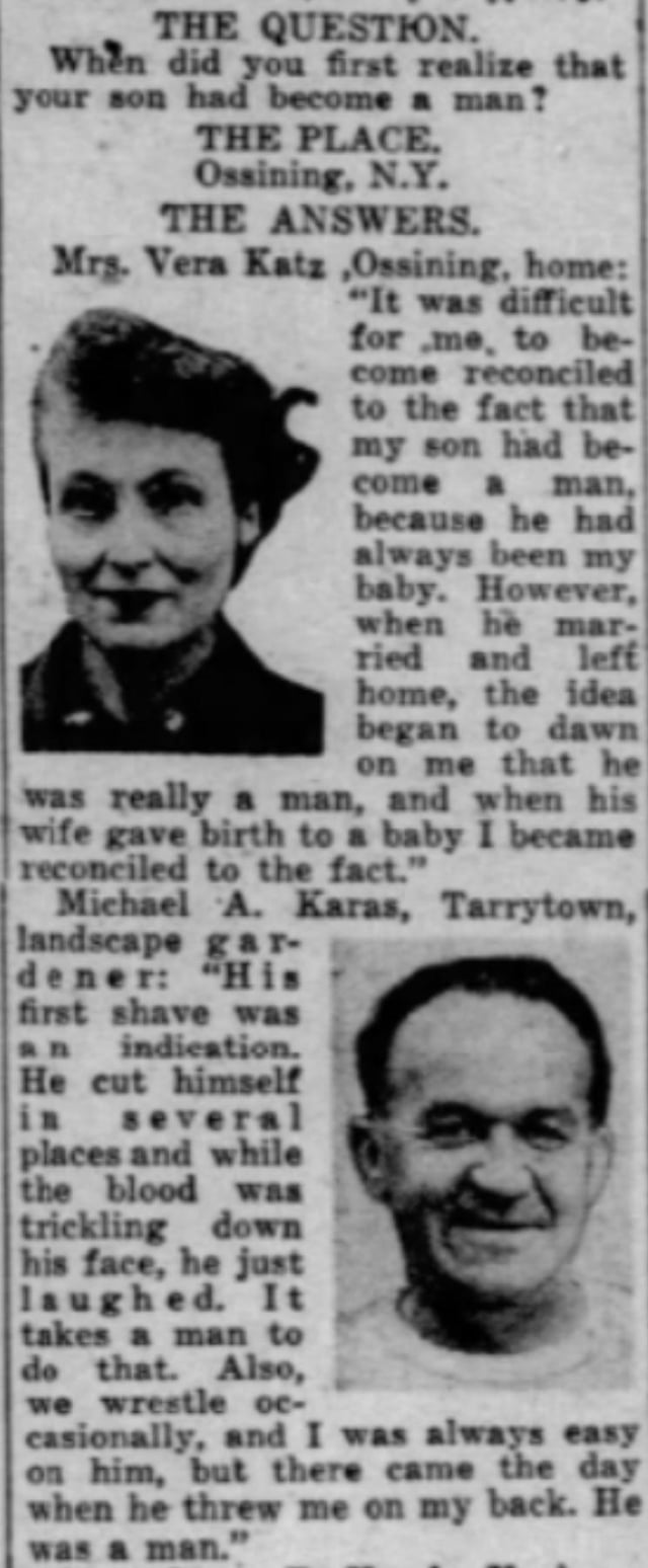 Inquiring Photographer:”When did you first realize your son had become a man?”Jan 18, 1952 by CryptographerKey2847