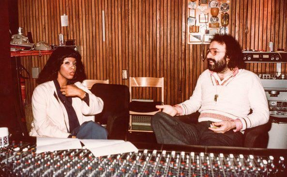 Donna Summer in the studio with Giorgio Moroder during the recording of “I Feel Love” in 1977.