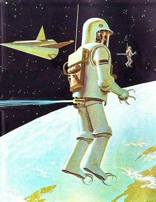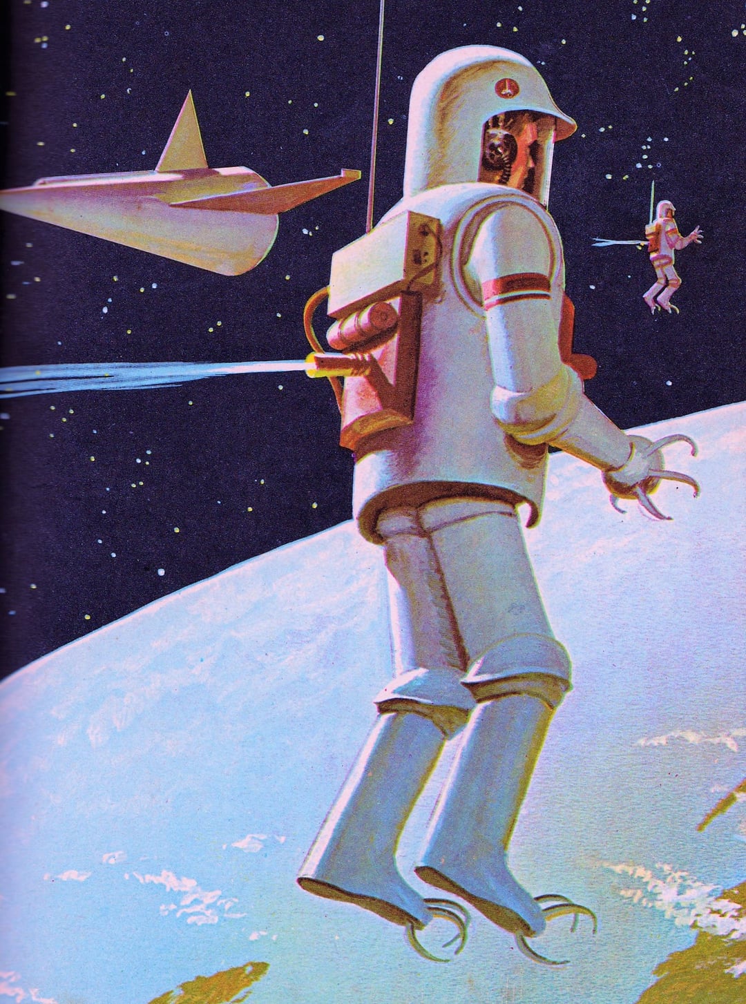 The claws are perhaps less silly than they appear . Early spacewalks on Project Gemini were fraught with difficulty and danger – partly because there was little to hold on to and anchor yourself in order to do any useful work – Newton rules ! I've included a 2nd version of this image which I nearly posted by itself – see the problem ?