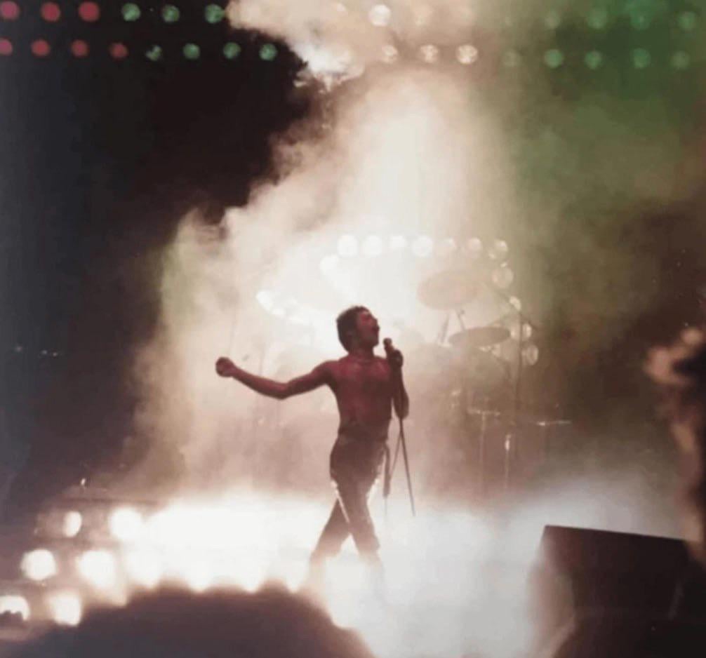a 16 year old girl take this picture at a Queen concert after sneaking her camera into the concert (1978)