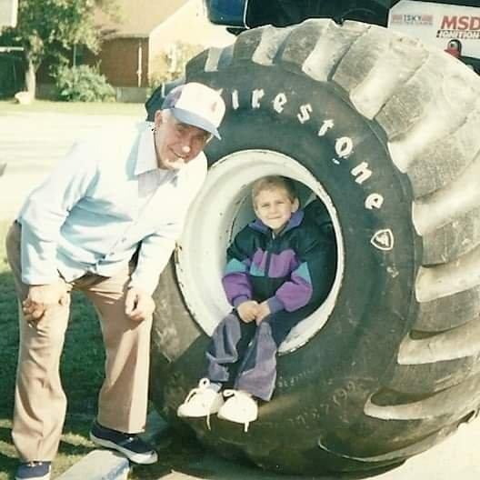 My Grandpa and I checking out Monster Trucks as I sat inside Bigfoot’s wheel. (1992)
