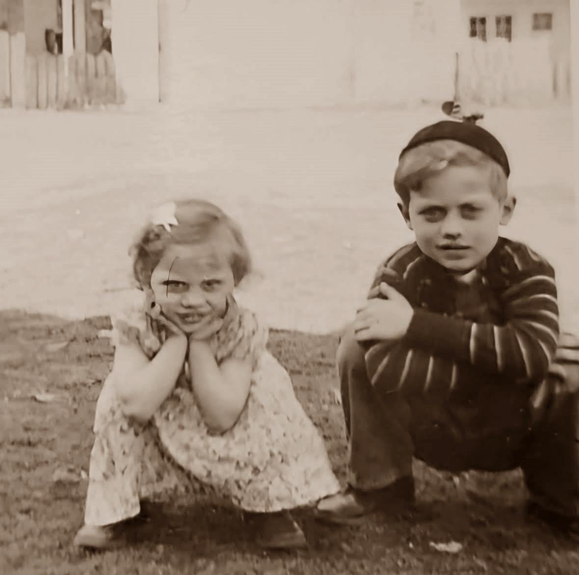Get a load of that mug! This is my Mother (2) and her big brother (4) in St. Louis Park, MN, circa 1950. It looks like her wheels were turning — just look at that sassy pose! Her face says it all!