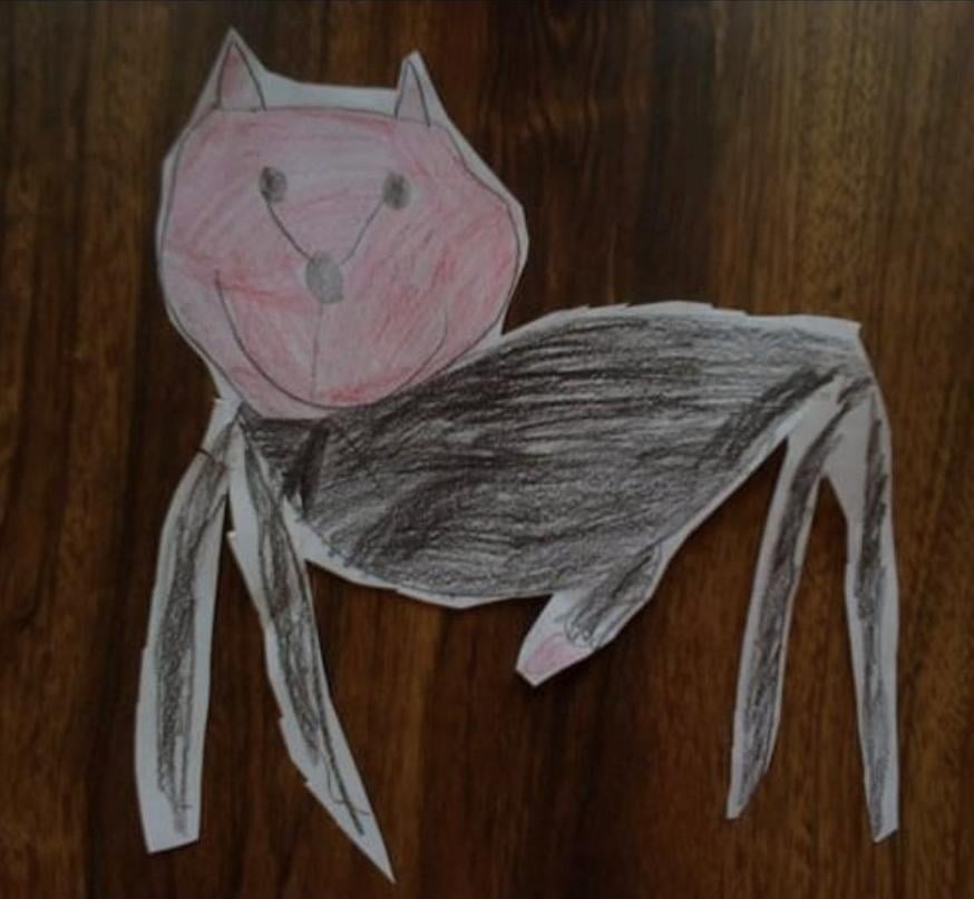 My daughter made a very anatomically correct drawing of our little 2 lb boy chihuahua when she was about 6. She forgot his tail, but she remembered eeeeeverything else…