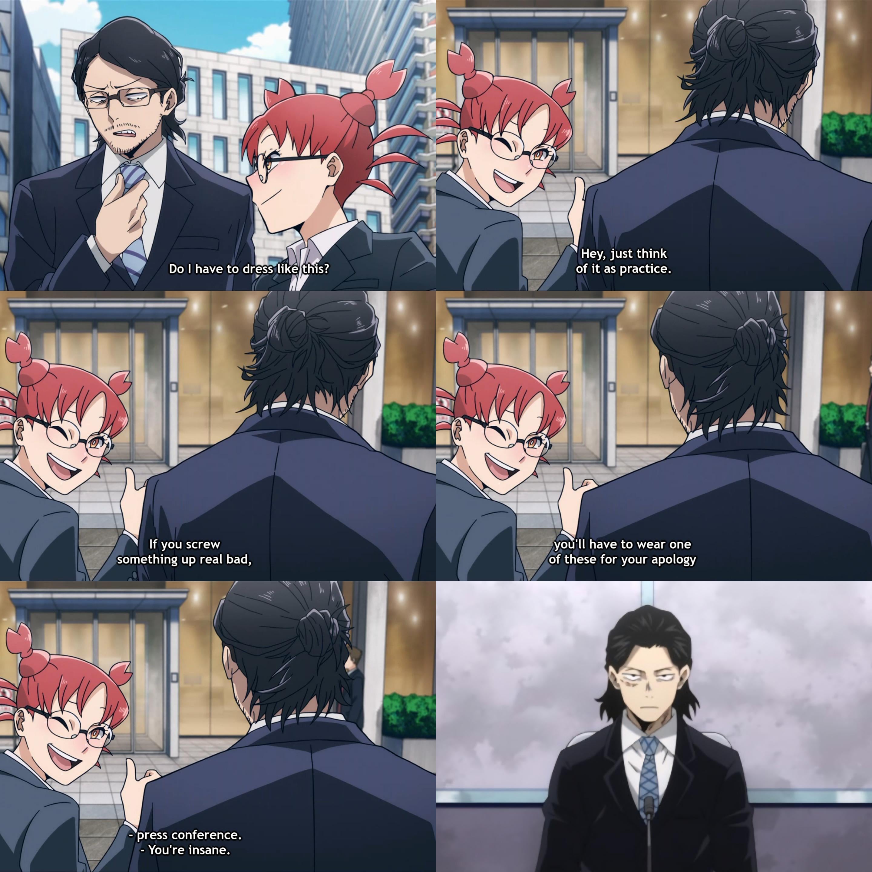 Aizawa: ‘I’d rather fight an army of Nomus than wear a tie.’ Narrator: ‘He ended up doing both. At the same time.