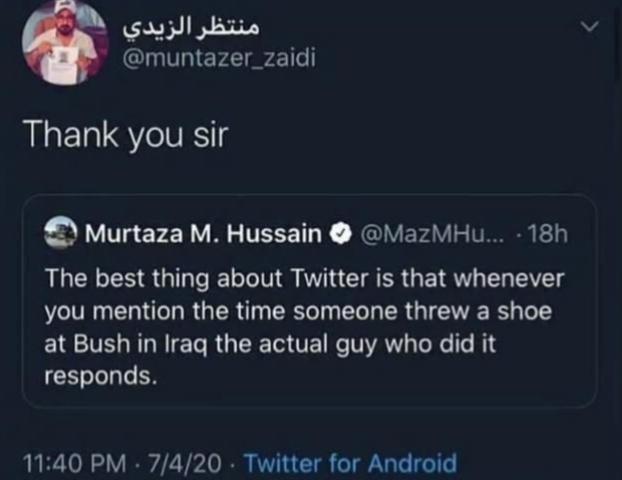 We have all thought about throwing a shoe at Dubya. I envy the guy