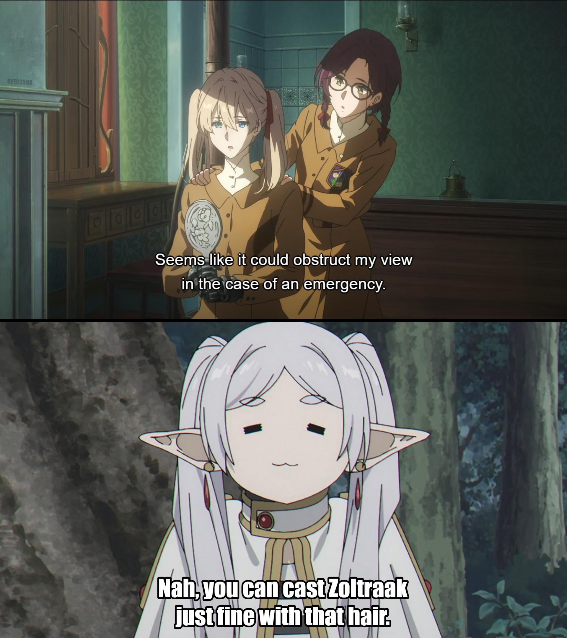 Having elf ears probably helps keep the hair out of the eyes, though [Violet Evergarden / Frieren] by Oversama