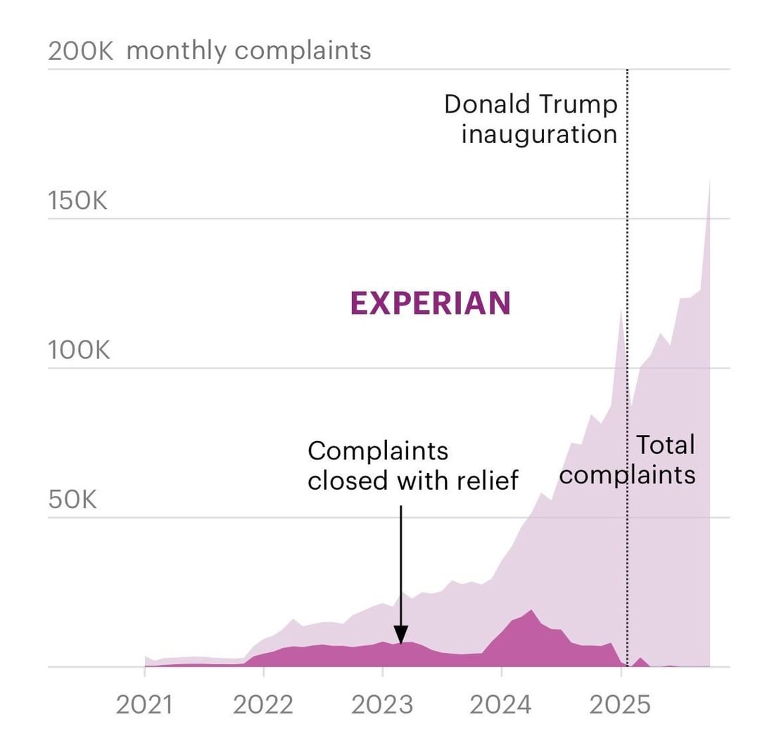 Experian’s drop was even more dramatic. The company resolved nearly 20% of complaints in consumers’ favor in 2024. Last year, that figure fell to less than 1%.