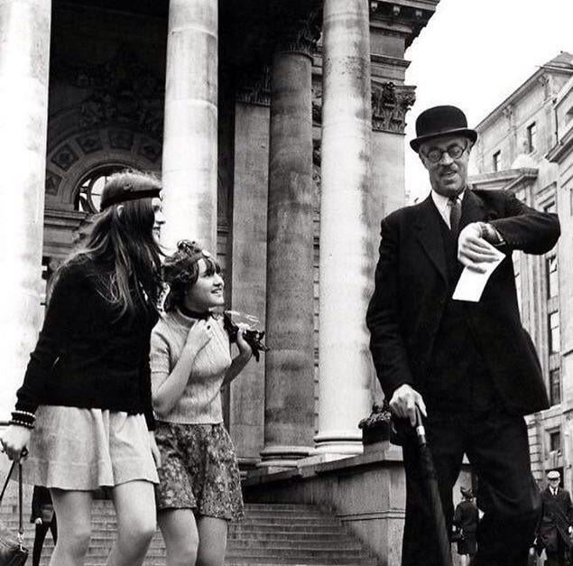 MelowMind on March 12, 2026 5:34 pm I love how he looks more than happy to give them the time. Like they ran along and he just sat there and said “those darn kids” laughed, twirled his cane, and skipped away