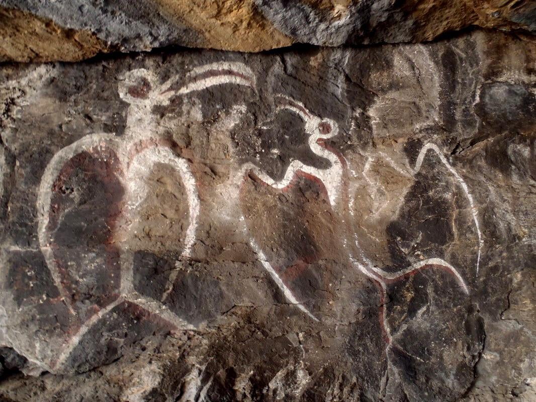 On Rapa Nui, in the Ana Kai Tangata sea cave, there are red, white & black ochre paintings depicting frigate birds (manutara) & The Birdman (tangata manu) a therianthropic figure (half man-half bird) 16 Century [1066×800] OC