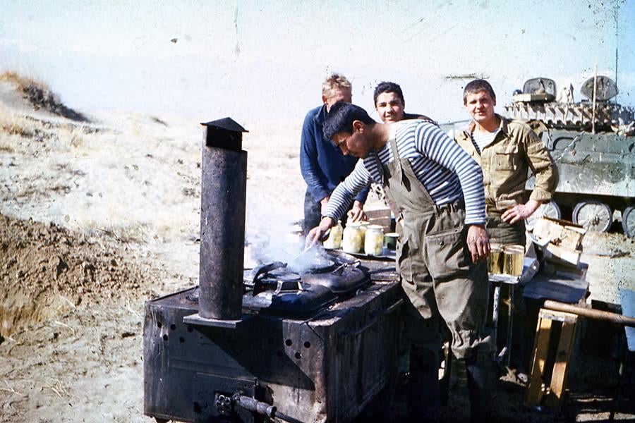 Soviet troops having an open air cookout in Afghanistan (1984) [900×600]