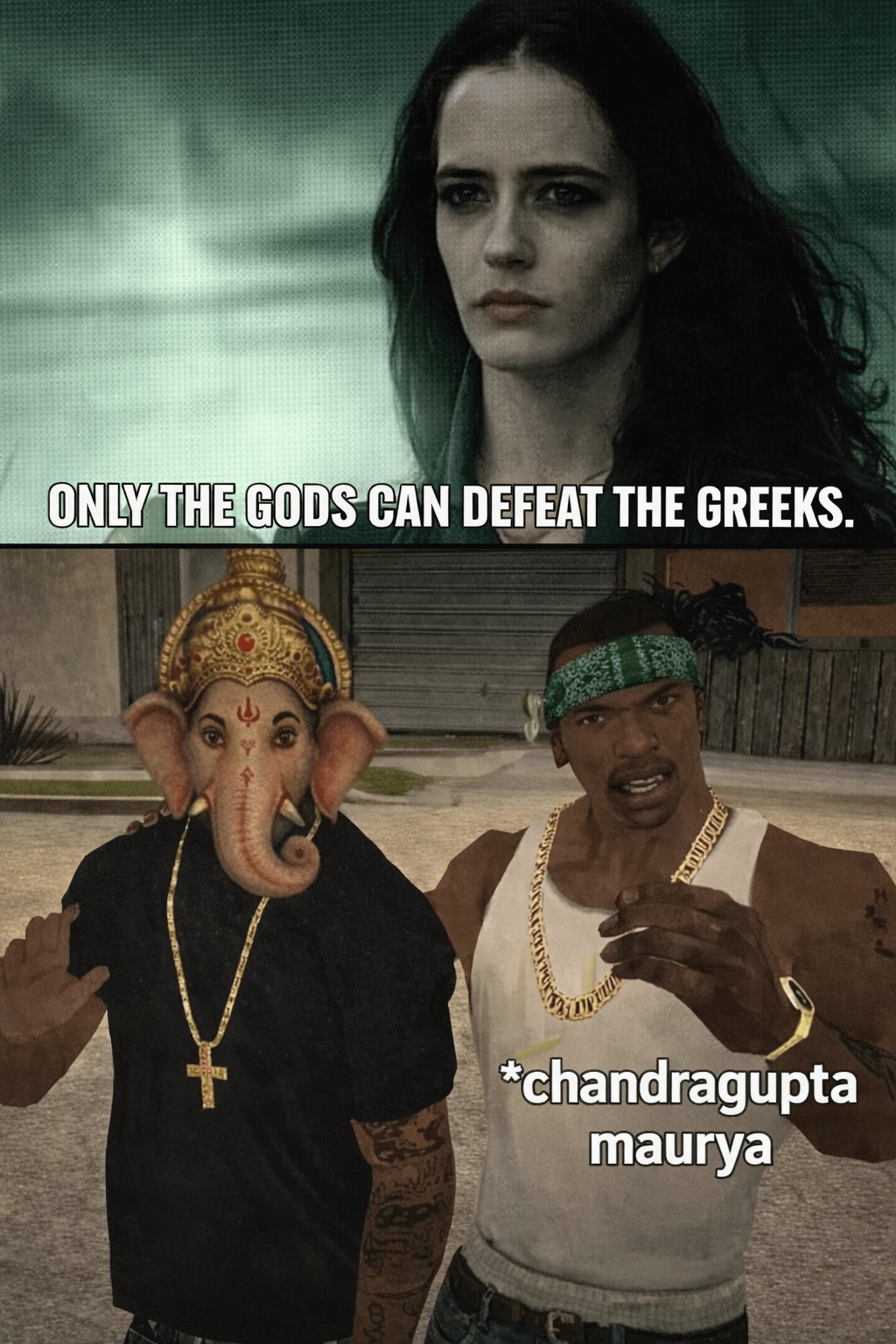 Chandragupta Maurya… The famously Jain emperor of the 4th Century BCE…Who is reported to have left his kingdom to his son Bimbisara to take pilgrimage down to present-day Karnataka to live his final years as a mendicant and fasted unto death. Standing next to Ganesha… Who isn’t found in the historical record till at least the 1st century CE, and not substantially till the mid first century CE….