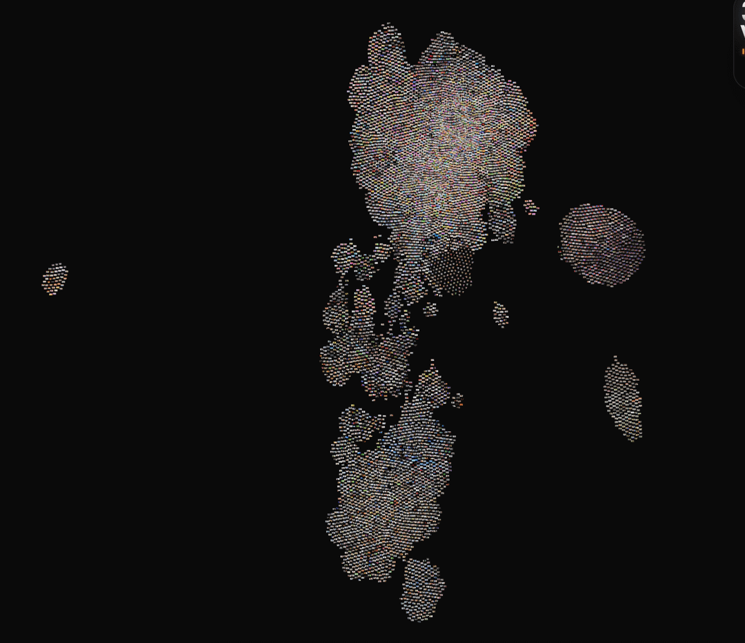 Without explanation on what we re seeing, nobody can understand this. What is “similarity”? What are the dots representing? What is the density conveying?
