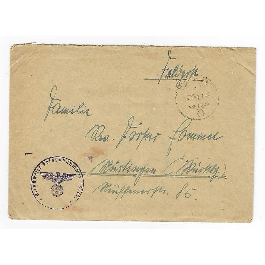 This letter was written by a German Soldier named Alfred Sommer. He served with a Luftwaffe transport Column. At the time of writing this letter to his family, he was stationed on the Eastern Front. The letter reads: