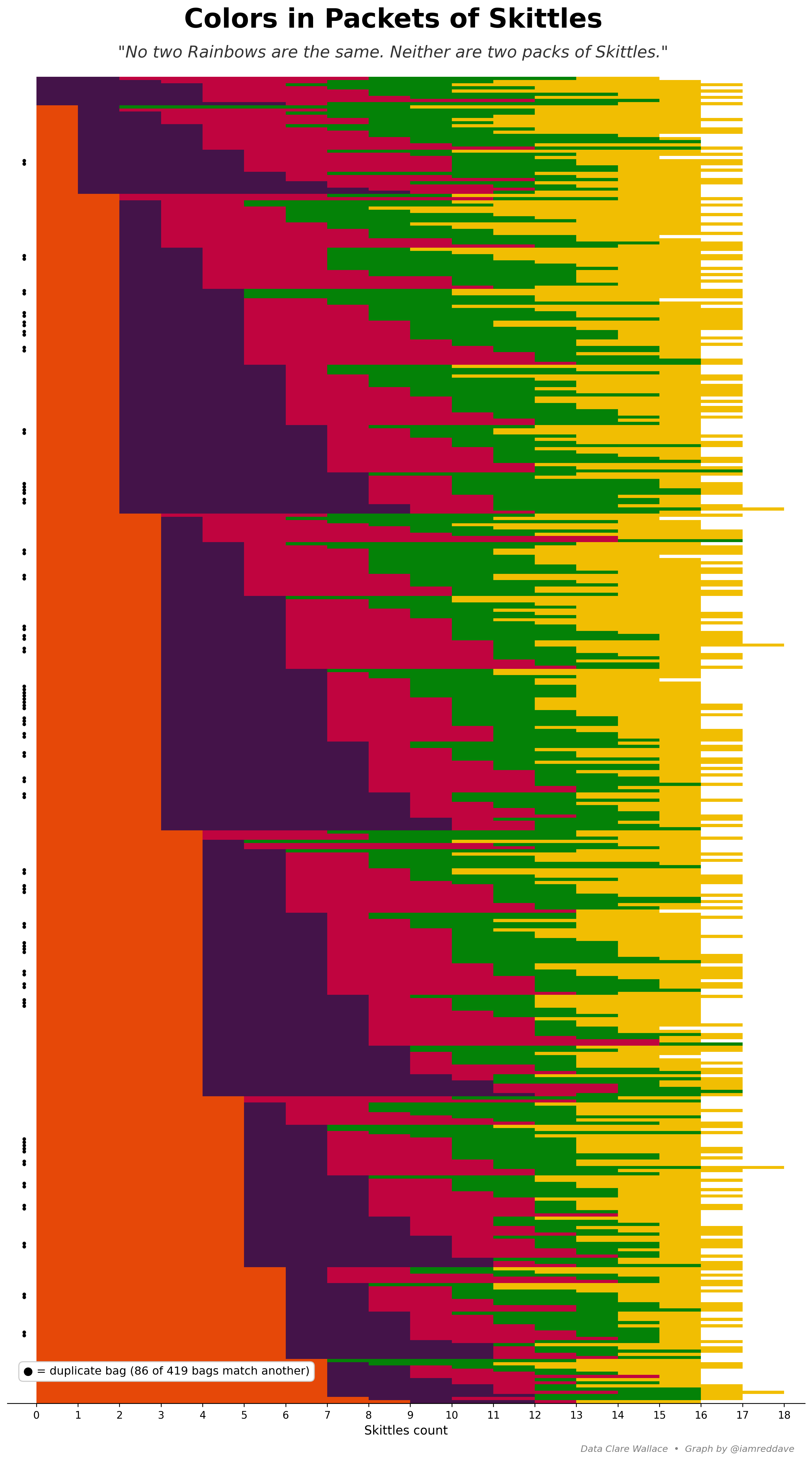 I took Clare Wallace’s spreadsheet and used python and mathplotlib to graph all the bags she has counted. [Code is here](https://gist.github.com/cavedave/779193b08673c735f2f0a9e048e0f79f)