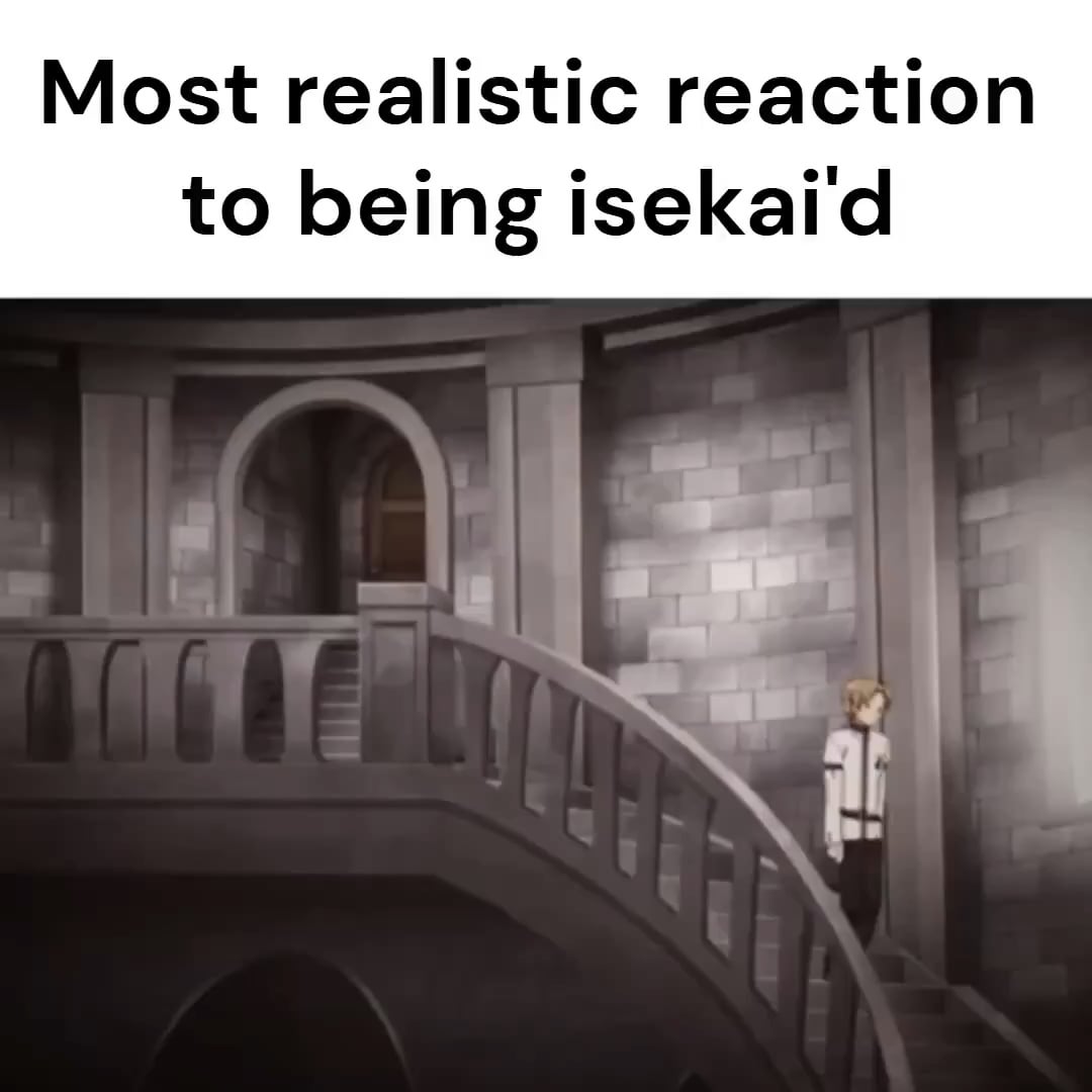 In all realistic technically, Isekai’d would be the same thing as being reincarnation, in Buddhism they believe in reincarnation which would be dying and coming back as something or someone different, babies usually are born crying fresh out the womb like they’ve just died and came back into life still crying from the moment they are brought back to consciousness. So in this video where she’s overreacting to which the video is titled “most realistic reaction to being Isekai’d” makes alot of sense because in the same way a baby comes out the womb crying, she comes reincarnated or “Isekai’d” into a world but with a fully developed body instead and crashes out in that world as the character she is, like the same way a baby would.