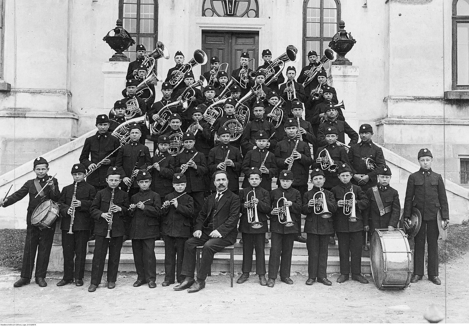 Orchestra of Skarbek’s Charitable Institution for Orphans and Poor in Drohowyż, Poland (now Ukraine), 1934. [1920×1334] by Snoo_90160
