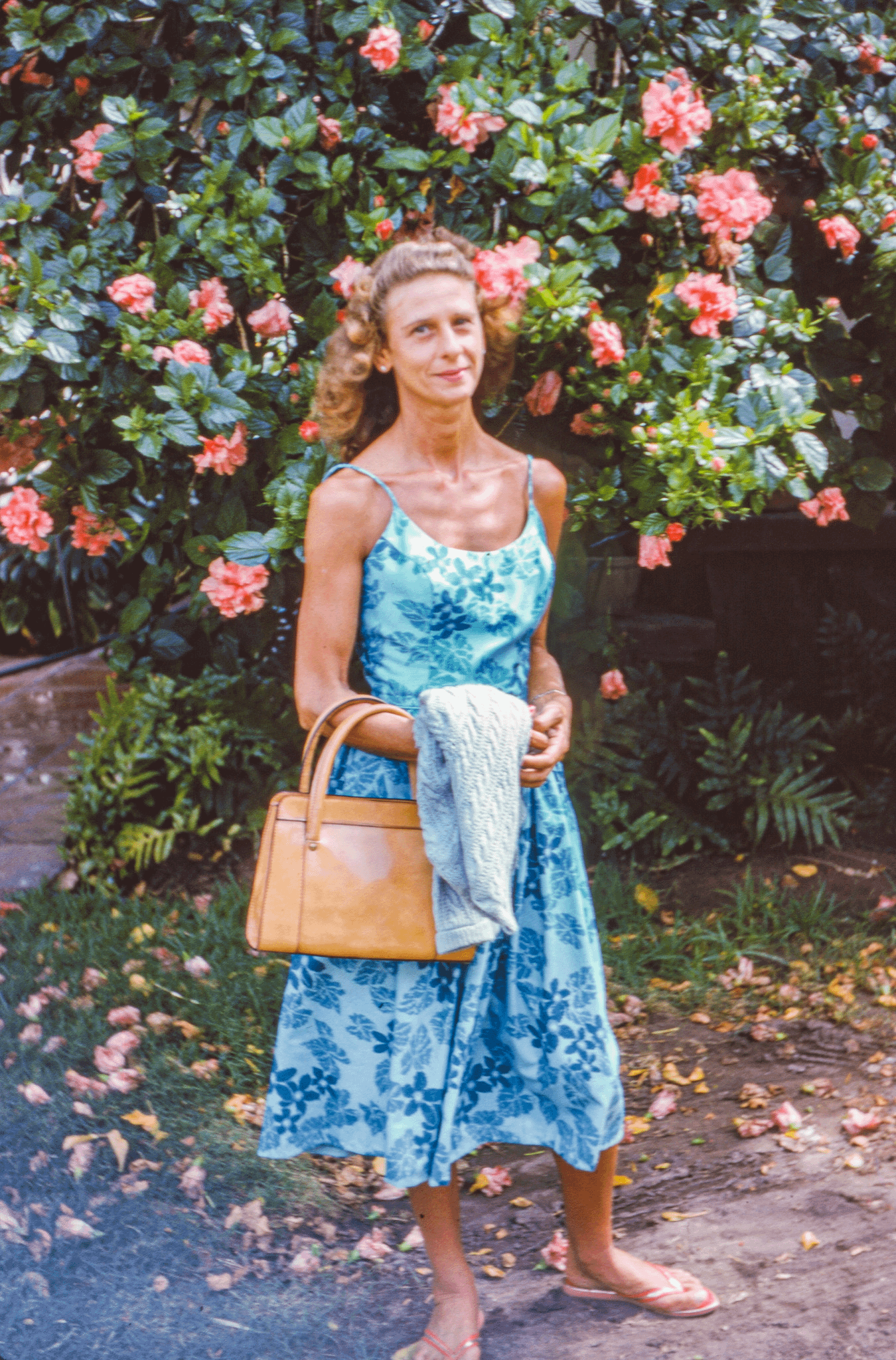 Lady in nice summer dress with impressive arms, poses with flowers, September of 1962 by Electrical-Aspect-13