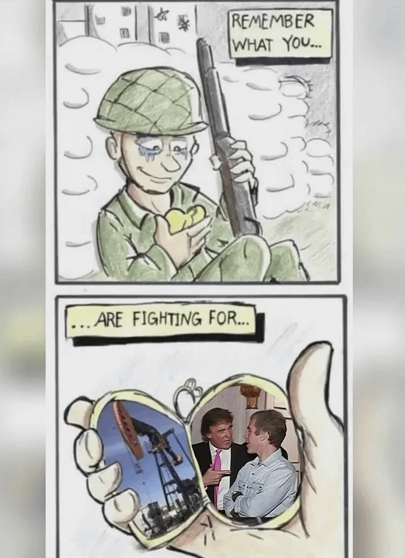 doesn’t seem like the US is fighting for oil. if anything, the other side of the locket should have Netanyahu’s portrait