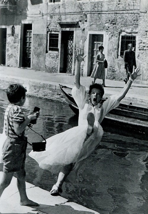 Katharine Hepburn (her first name is spelled with two a’s) played a lonely 40-year-old secretary from Akron, Ohio who spends her life savings on a trip to Venice, Italy. They did three takes of her falling into a canal in Campo San Barnaba, and she said she got an eye infection.