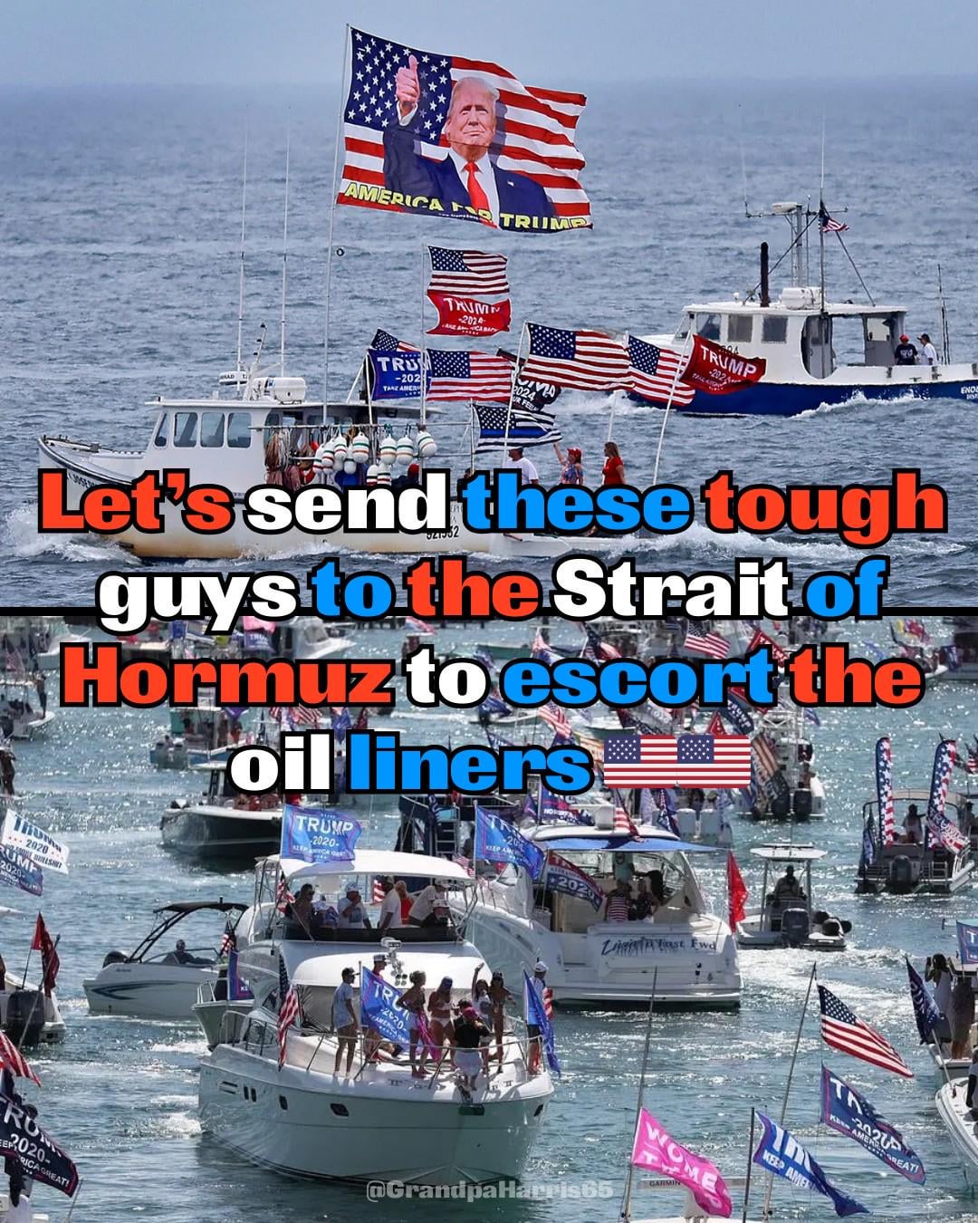 hmm i wonder how many of those pontoon boats could actually make it to the strait of hormuz lol