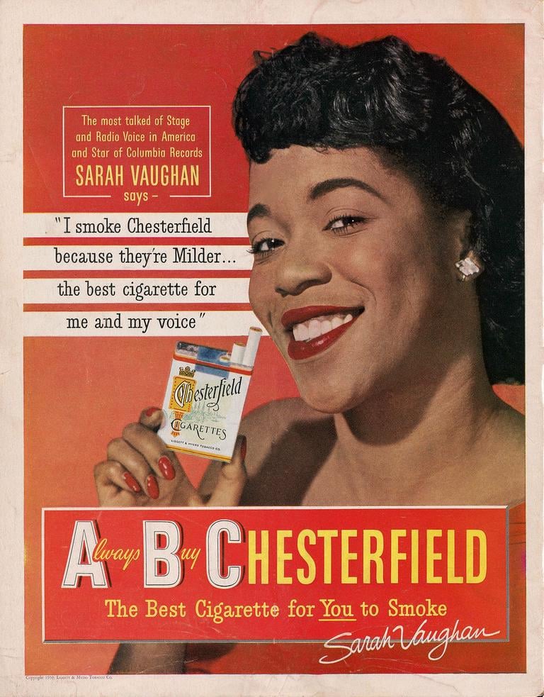 January 1950 ad in Our World Magazine featuring the great Sarah Vaughan. Our World Magazine, was published by African American businessman, John Preston Davis
