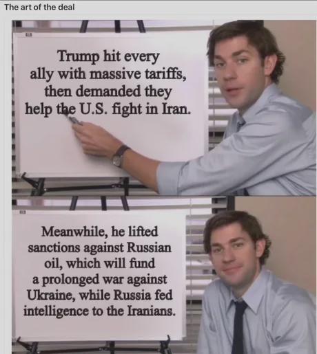 The worst part is he already knew NATO would snub him in his request for help with the Strait of Hormuz. In Trump’s mind, he’s going to use this as an excuse to do something they hate in the future and point back to this request as his justification. It’s just like what he did with the Nobel Peace Prize when he was “snubbed,” he decided “to not be so nice for stopping 234232 wars.” And then he just started attacking and threatening every Country he could juuuuuust because he didn’t get that Nobel Peace Prize and it was a reasonable response in his mind.