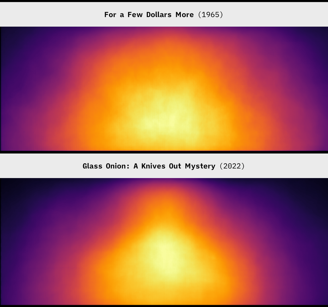 It’s also interesting how with blade runner you see two areas of activity, suggesting two people in a frame interacting. Could just be a directing style for that movie, or maybe movies started using more frequent cuts to avoid having to include two people in a shot, or for some other reason.