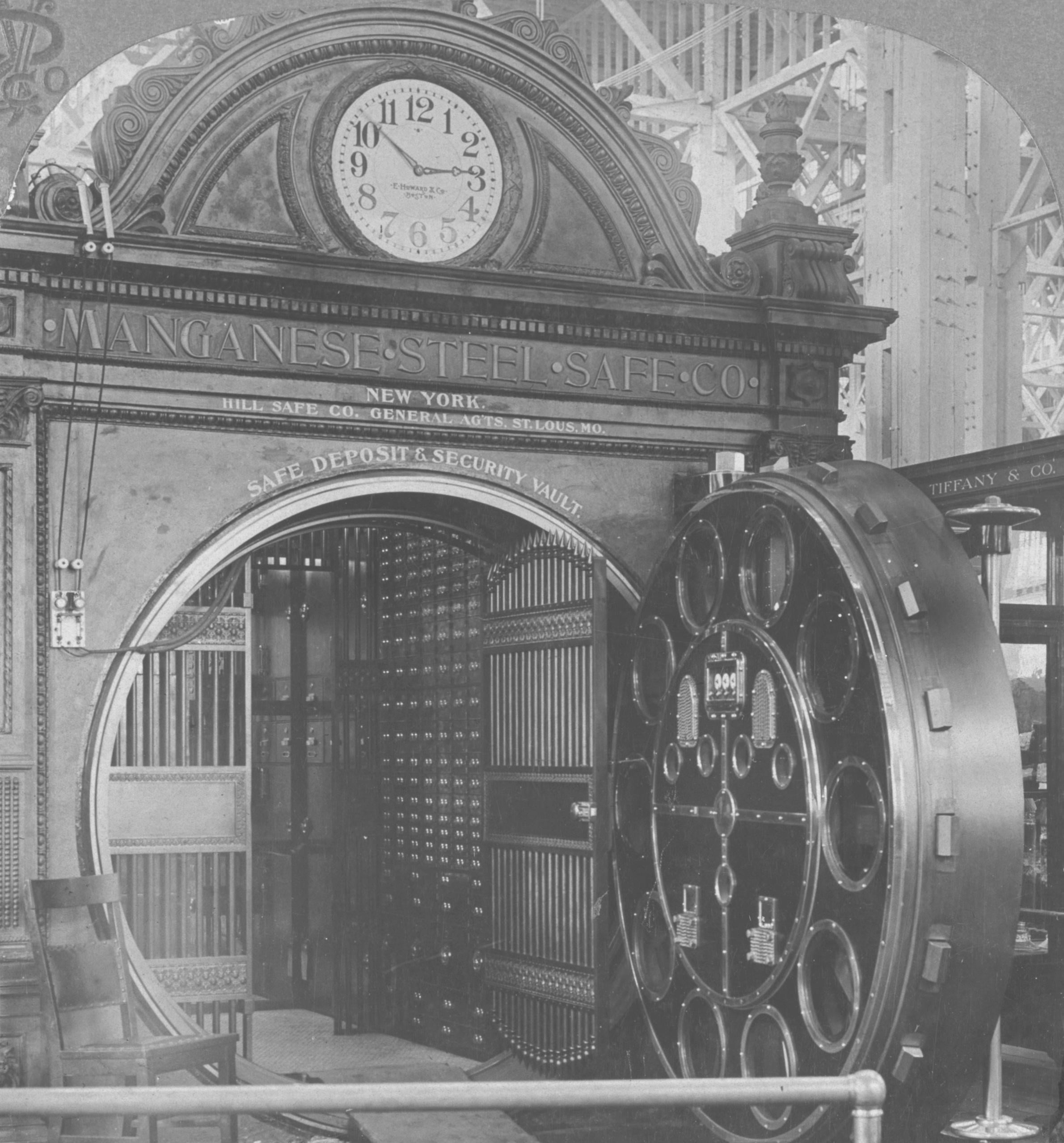 Share Facebook Twitter LinkedIn Pinterest Bluesky Threads Steel bank vault made by the Manganese Steel Safe Company on display at the St. Louis World’s Fair in St. Louis, Missouri, 1904. [2380×2557] by chubachus