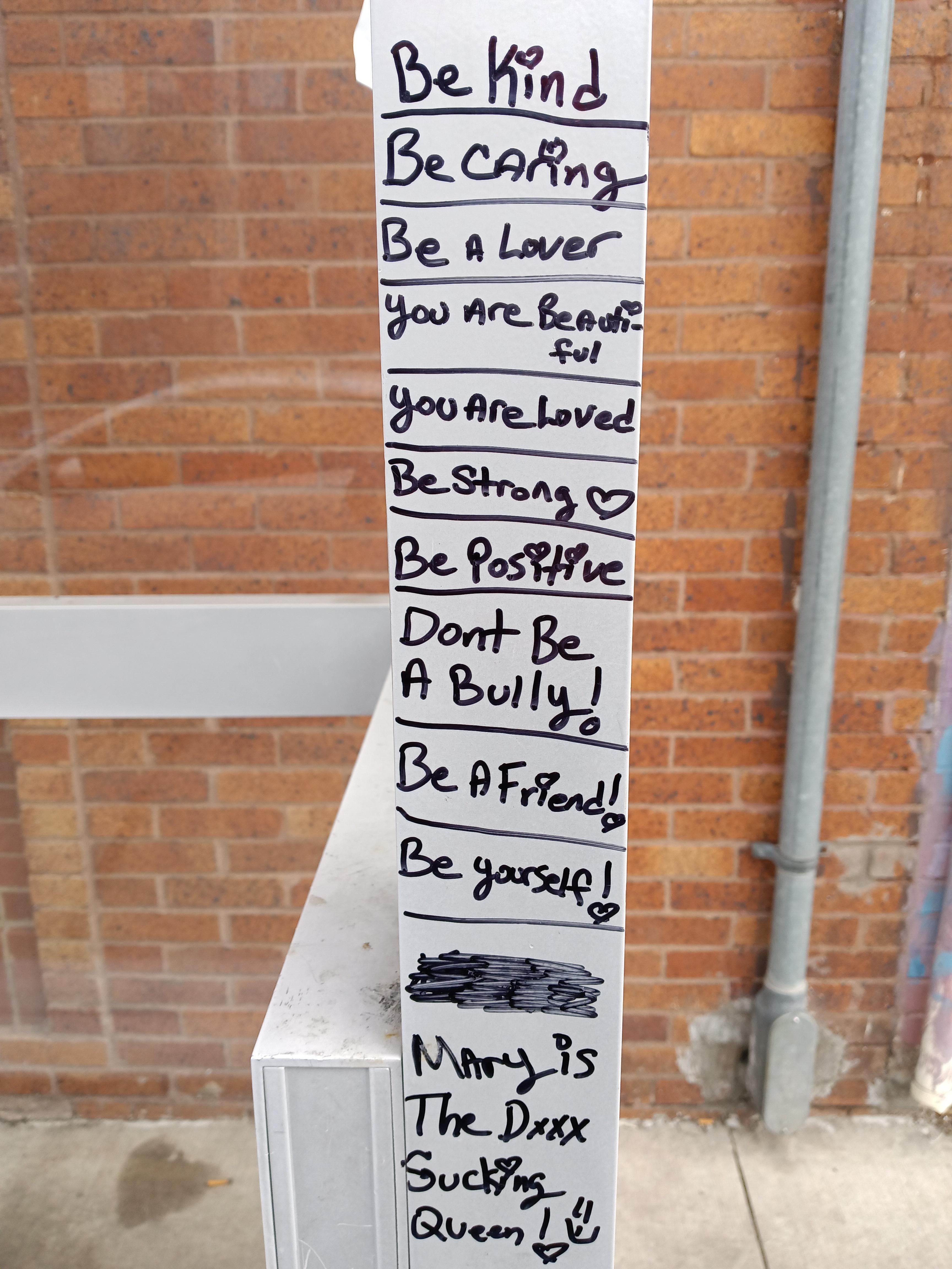 Some positive affirmations written on the bus stop 🥰