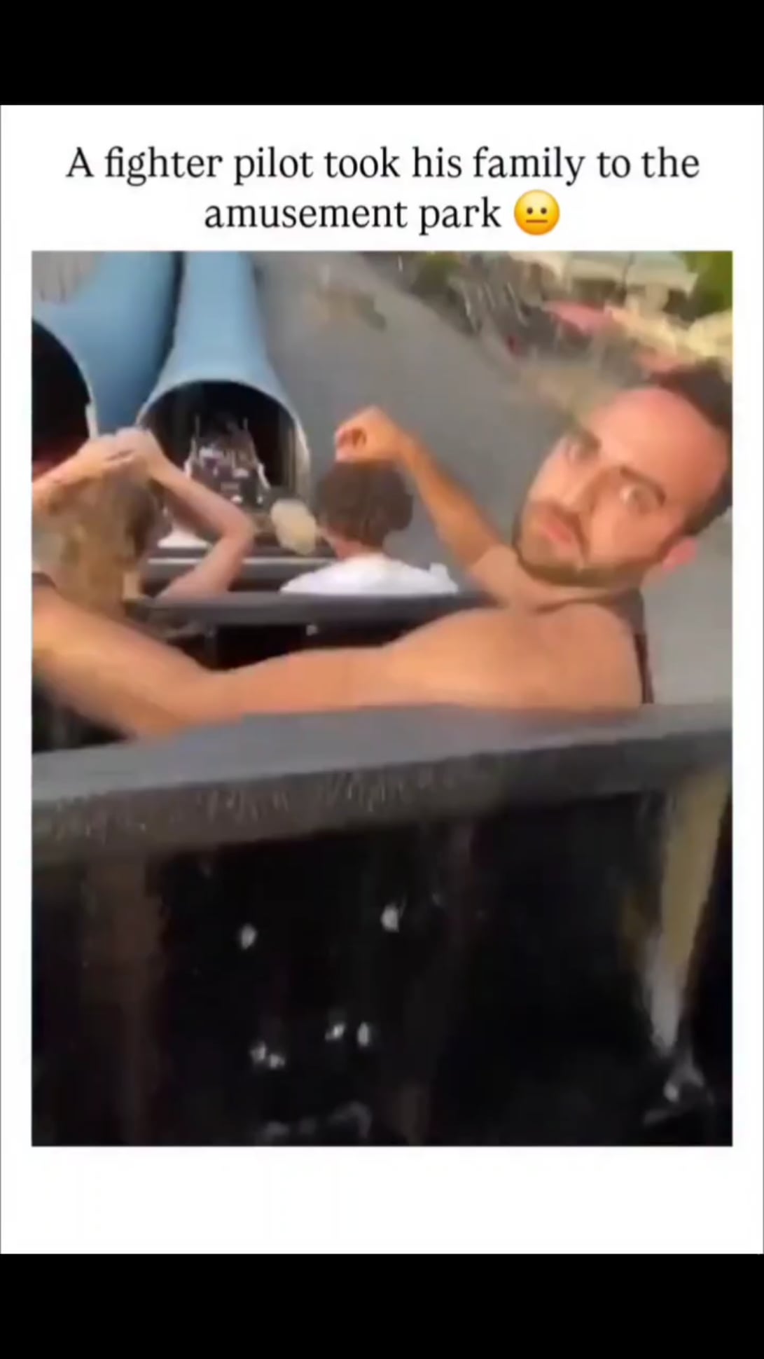Then the next video is him screaming with his hands up inside the fighter plane cockpit.
