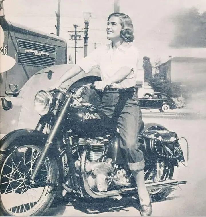 That bike paired with that hair is genuinely perfect. 1949 was doing something right.