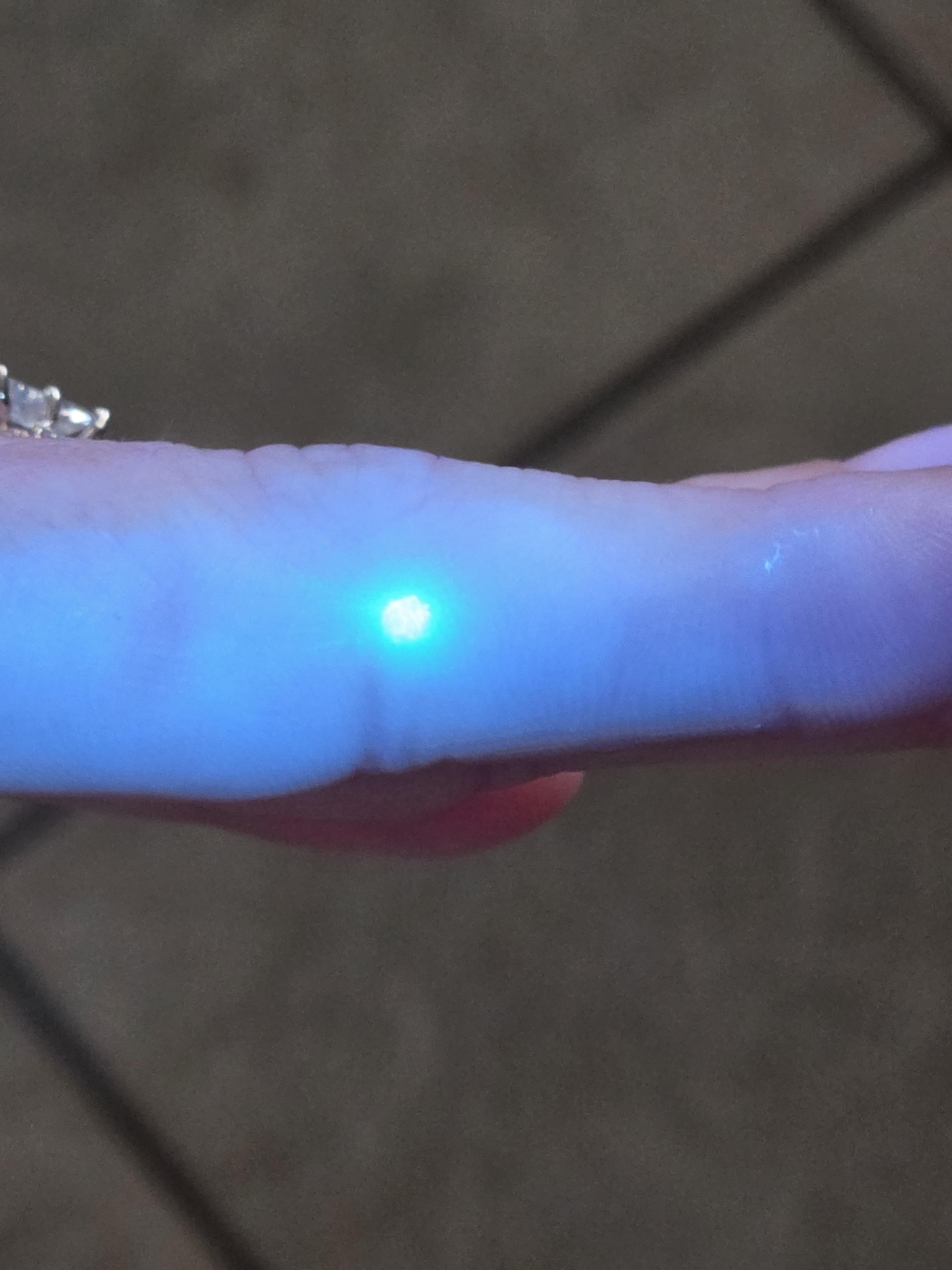 My fiancee has a spot that glows green when I shine the laser pointer on her finger…..errrr I mean when I shine a laser…… Arg I mean a uv light. 🤦 Ah never mind.