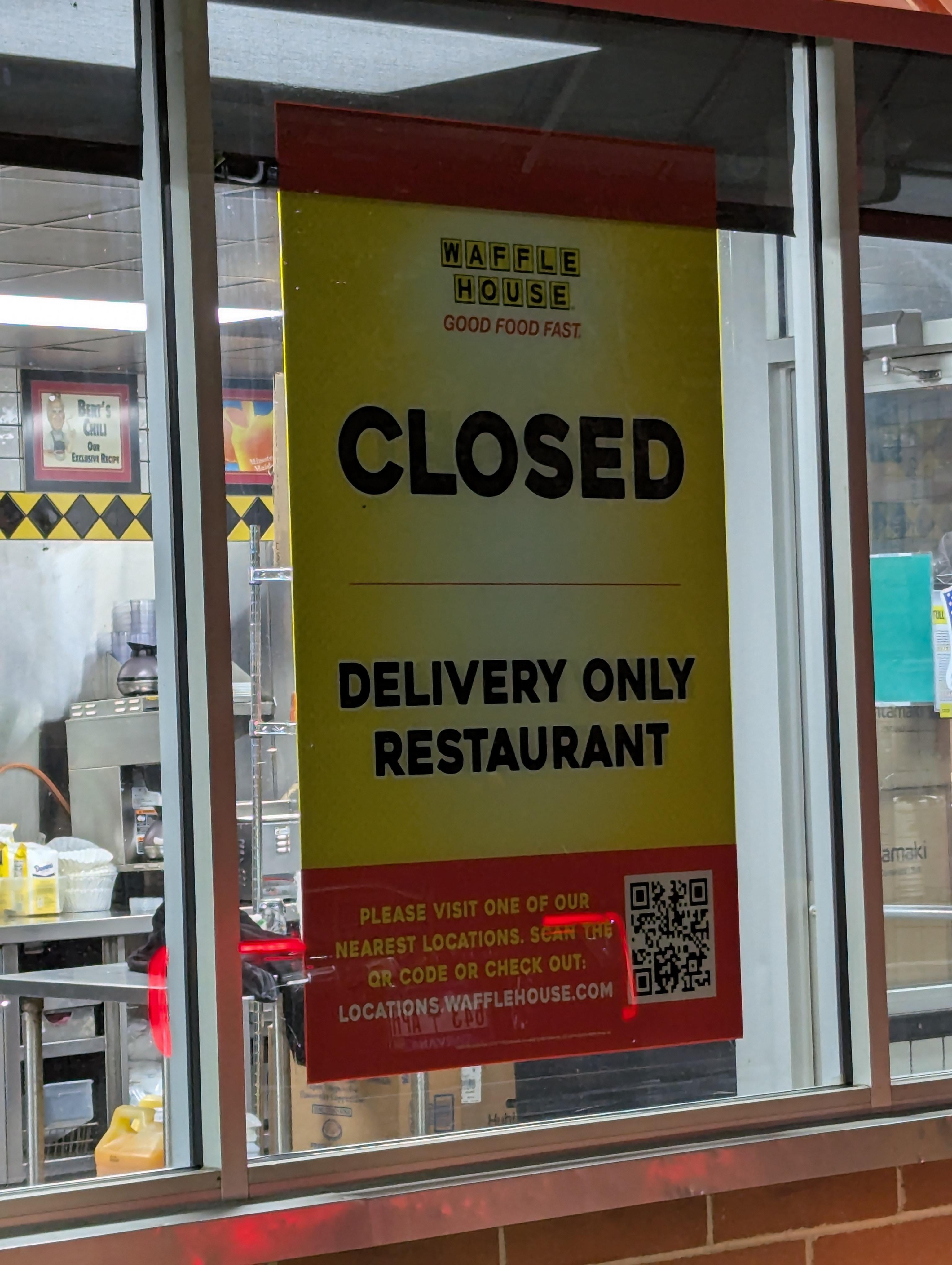 Of course, the closing of Waffles Houses have been used as a disaster indicator for years, and just look at the state the country is in. They had to build an always closed Waffle House!
